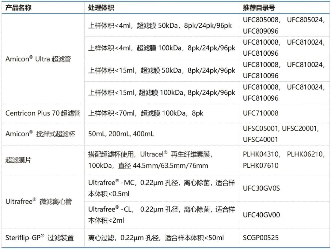 表1:采用Millipore®超濾産品濃縮病毒