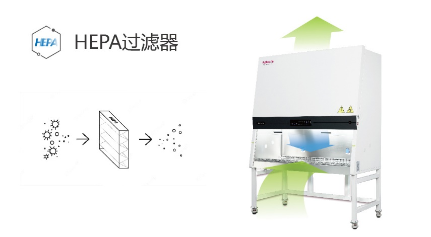 HEPA過濾器(qì),過濾效率99.995%@MPPS(H14),配備過濾器(qì)壽命倒計(jì)時(shí)、過濾器(qì)壓差報警功能。