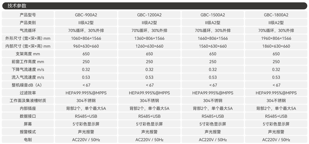 松洋生(shēng)物Ⅱ級A2型 GBC系列生(shēng)物安全櫃集高(gāo)顔值、高(gāo)實用性、高(gāo)性價比“三高(gāo)”屬性于一體(tǐ),獨立的下降風和(hé)外排風雙風機運行(xíng)系統控制(zhì)下降風速及流入風速,配合雙風速傳感器(qì),實時(shí)檢測風速。搭載HEPA過濾器(qì),過濾效率達99.995%@MPPS(H14)。保護實驗人(rén)員、樣本,提高(gāo)實驗工作(zuò)效率。