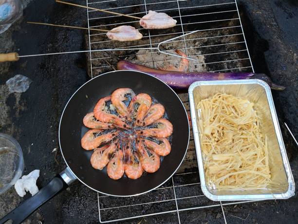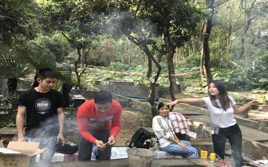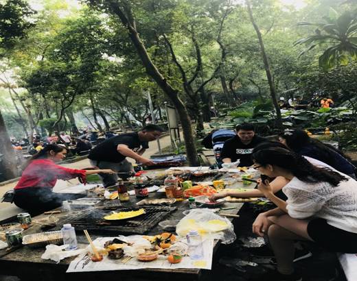 大(dà)家(jiā)到達燒烤場(chǎng)後,十分有(yǒu)默契的開(kāi)始分工合作(zuò):準備食材、配料、洗刷燒烤所用的網架、竹簽和(hé)燒烤叉,加炭起爐子,溫暖的炭火(huǒ)燃起了“人(rén)間(jiān)煙火(huǒ)”。