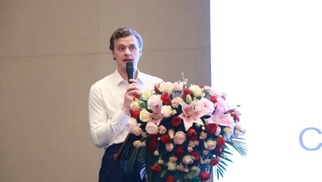 Alfa Laval亞太地區(qū)市場(chǎng)推廣Fredrik先生(shēng)和(hé)華南地區(qū)碟片離心機銷售黃雲窗先生(shēng)共同作(zuò)《碟式連續流離心機在生(shēng)物醫(yī)藥方面的應用》主題報告。