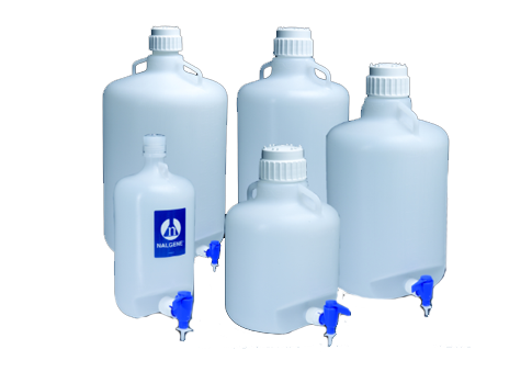 瓶身LDPE材料,瓶蓋和(hé)水(shuǐ)龍頭PP材料;無生(shēng)物毒性,可(kě)盛裝蒸餾水(shuǐ)、酸、堿等各種溶液分裝,有(yǒu)以5升為(wèi)增量的刻度,有(yǒu)提手。(2318-0010無刻度和(hé)提手)。保證密封/有(yǒu)刻度