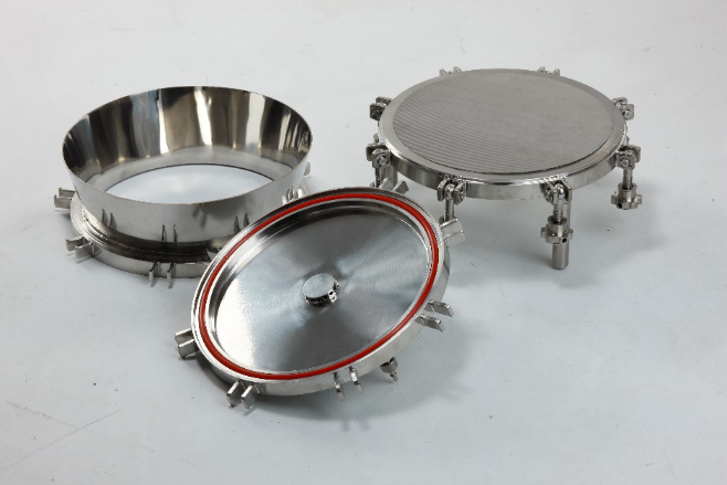 包括:過濾器(qì)底座,加壓過濾器(qì)上(shàng)蓋,大(dà)矽膠密封圈,不鏽鋼微孔篩闆,過濾支撐網,液體(tǐ)分配器(qì),卡箍與墊片,軟管接頭,排氣閥等。